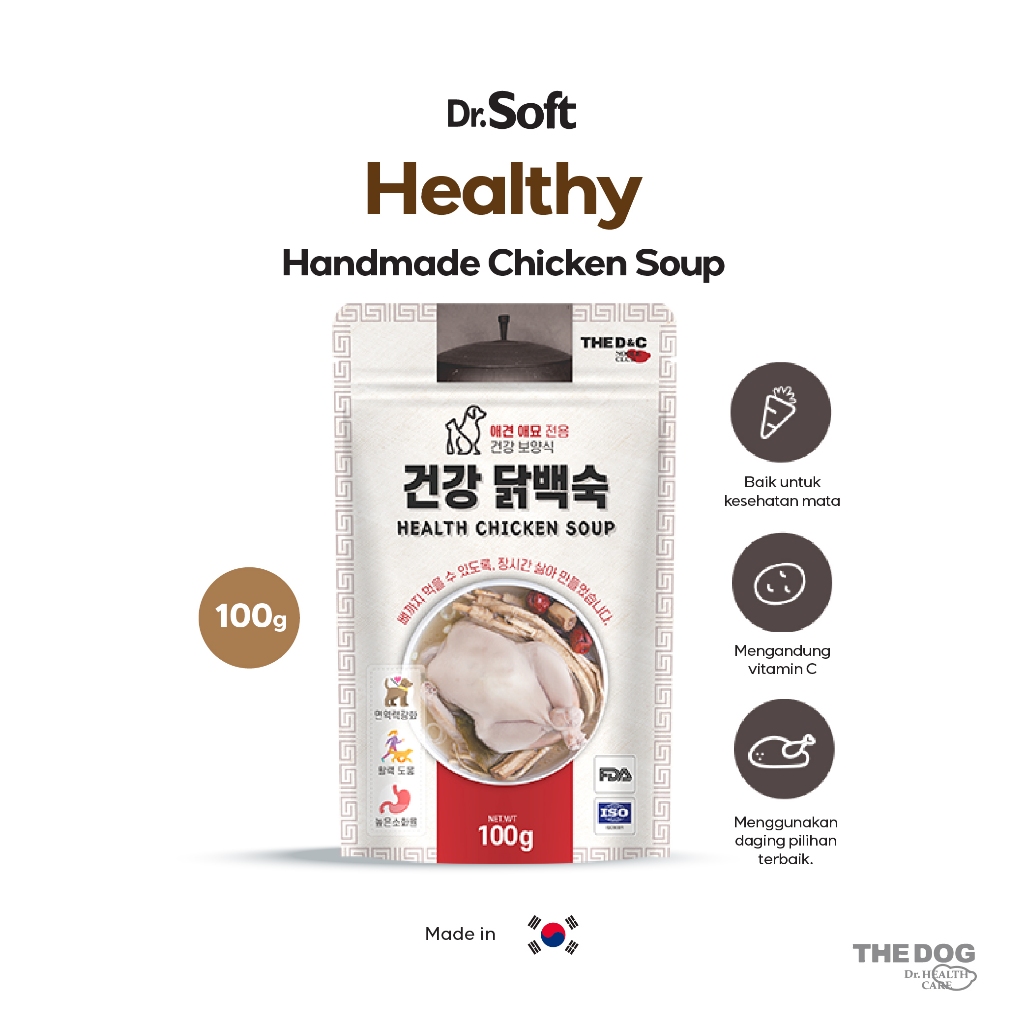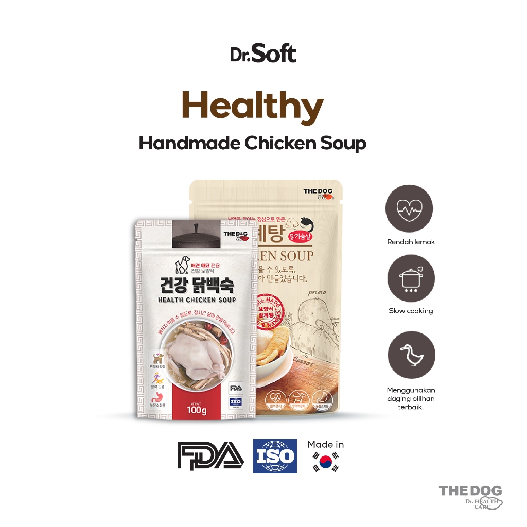 Handmade Soup yang dibuat dari dada ayam segar tanpa lemak dengan proses pemanasan yang lama (presto) untuk tekstur ayam yang lembut.